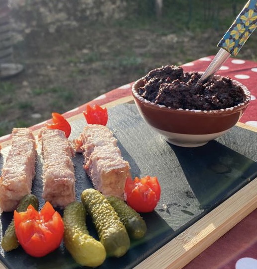 Den Abend rundete ein wundervolles Essen im Garten ab. Wie man es aus Frankreich kennt – eine lange Tafel, Wein und leckeres Essen. Dazu schöne Gespräche und tolle Tipps von 2 total netten Motorradkollegen aus dem Elsass 🇫🇷👌🏻