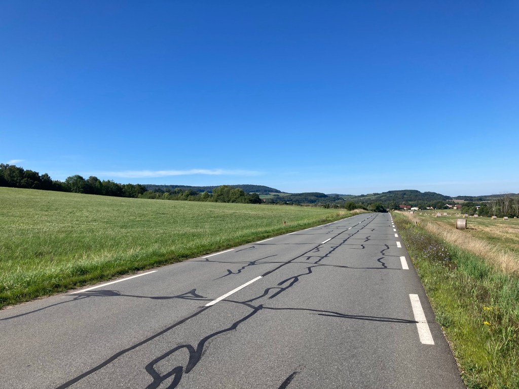 Wir starten heute bei wolkenlosen Himmel in Belfort und fahren hinein in eine wundervolle Landschaft. Sanfte Hügel und wenige Dörfer auf dem Weg begleiten uns.