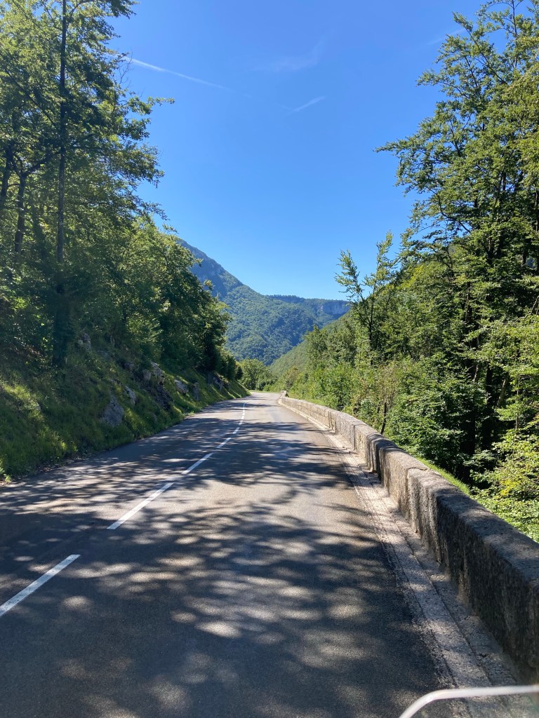 Stellenweise wurde es ganz schön einsam unterwegs. Die Regionen sind bis auf vereinzelte Städte und in die Landschaft gestreute Dörfer kaum besiedelt😊 Ein ganz tolles Gefühl stellt sich ein. Erinnert alles etwas an eine Mischung aus Donautal und Allgäu 👍🏻🇫🇷