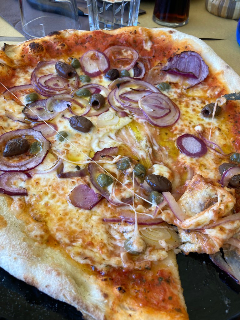Kleine Anekdote am Rande… Nach dem Mittagessen: „Wie viel hast du bezahlt?“ „Wieso ich?? Hast du nicht bezahlt, als ich auf der Toilette war?!“ „Nö, ich dachte, als ich auf der Toilette war hast du bezahlt!“ Also nochmal umgedreht und zurück zur Pizzeria gefahren um zu bezahlen 🏍️…💰🤷🏼♂️😂