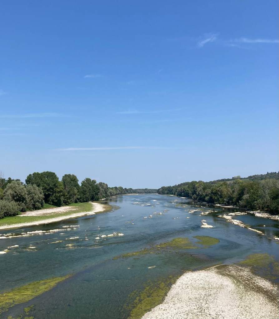 Nachdem wir die schöne Altstadt von Asti hinter uns gelassen haben, steuerten wir durch die doch schon sehr verdorrte Hügellandschaft bei Asti letztendlich die Poebene an. Die Auswirkungen von fehlendem Regen sind beim Blick in den Po deutlich zu sehen😳