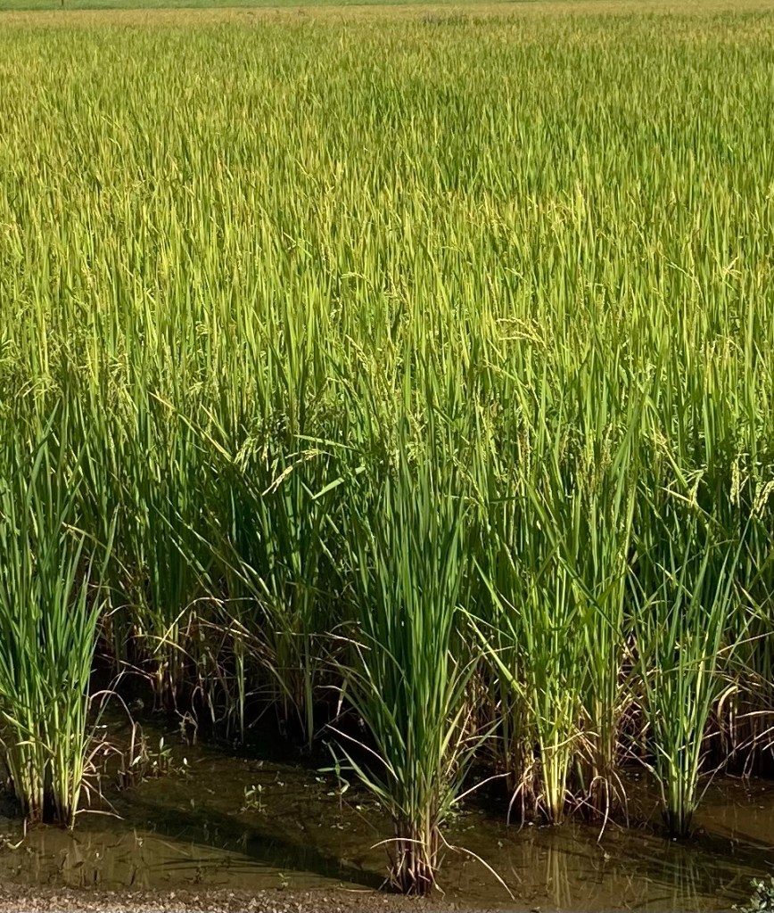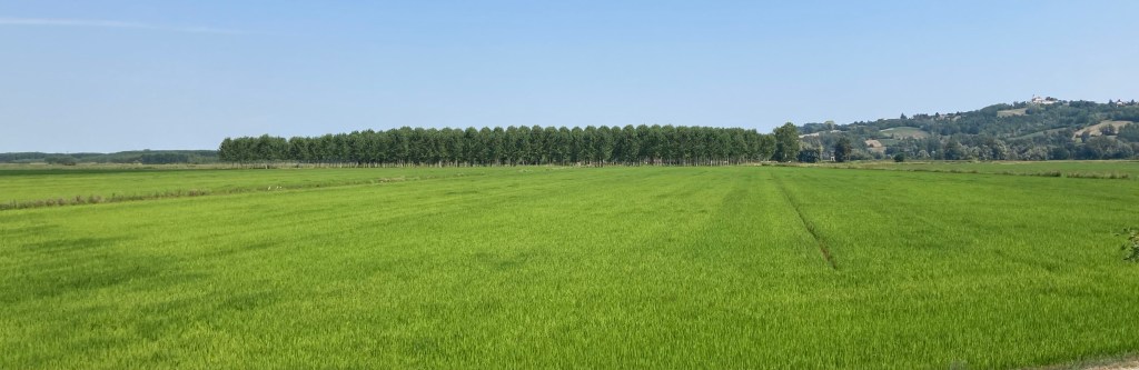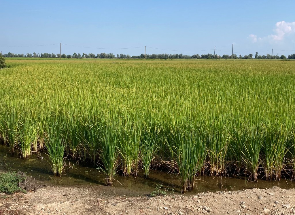 Mit Überqueren des kaum Wasser führenden Po ändert sich die Landschaft – Reisanbau dominiert nun die Landschaft. Der Reis scheint hier etappenweise angebaut zu werden. Wir haben auf den Feldern alle Reifestufen ausmachen können. Allen gleich ist der unvergleichliche Duft von Reis, der hier in der Luft liegt😋