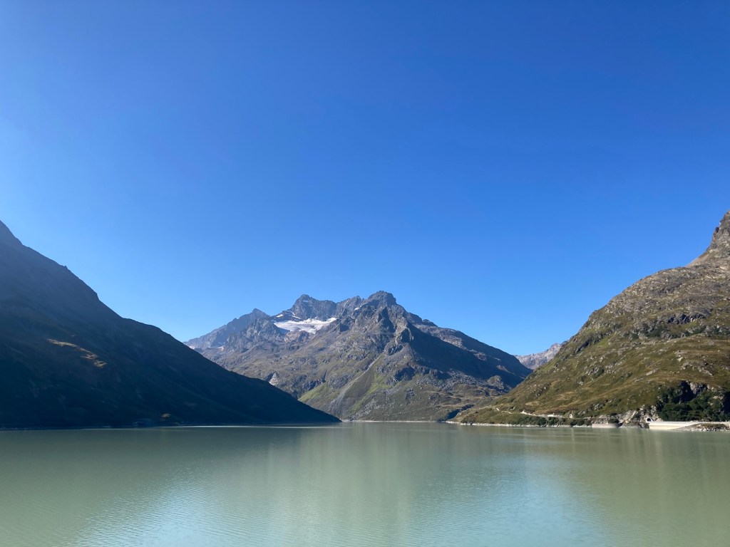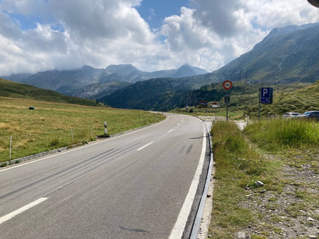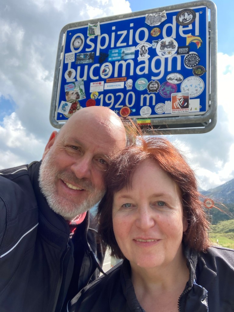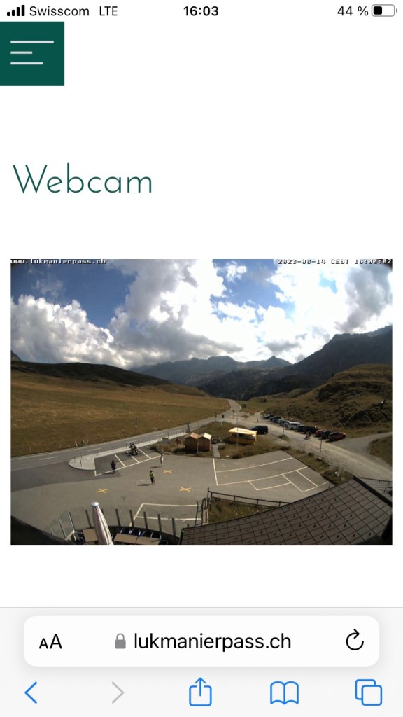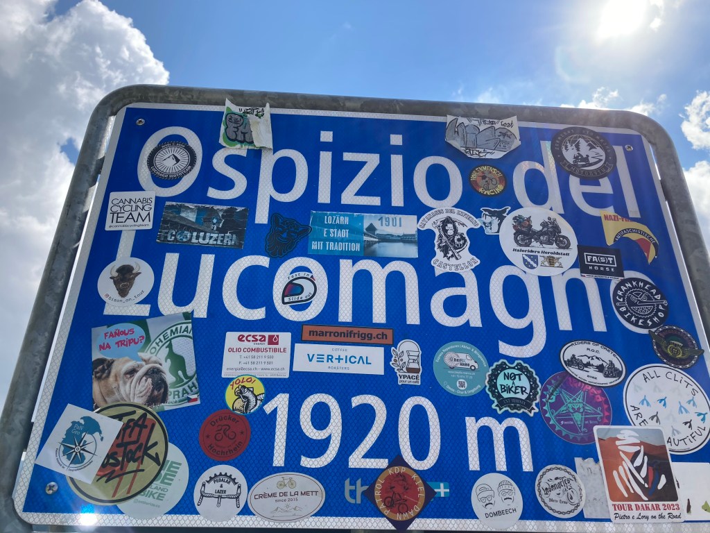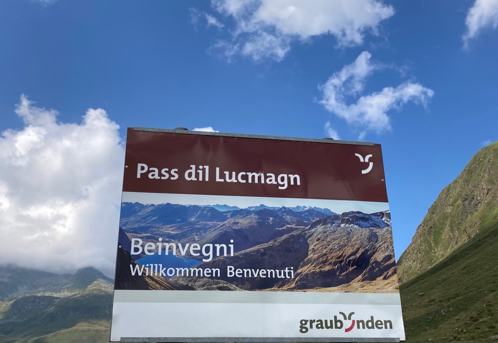 Nach einer wirklich schweißtreibenden und nervenaufreibenden Suche nach dem richtigen Einstieg in die Straße zum Lukmanierpass sind wir dort oben auf knapp 2.000 m tatsächlich noch angekommen – war aber auch nicht eindeutig zu finden im Straßengewirr von Bellinzona😳
