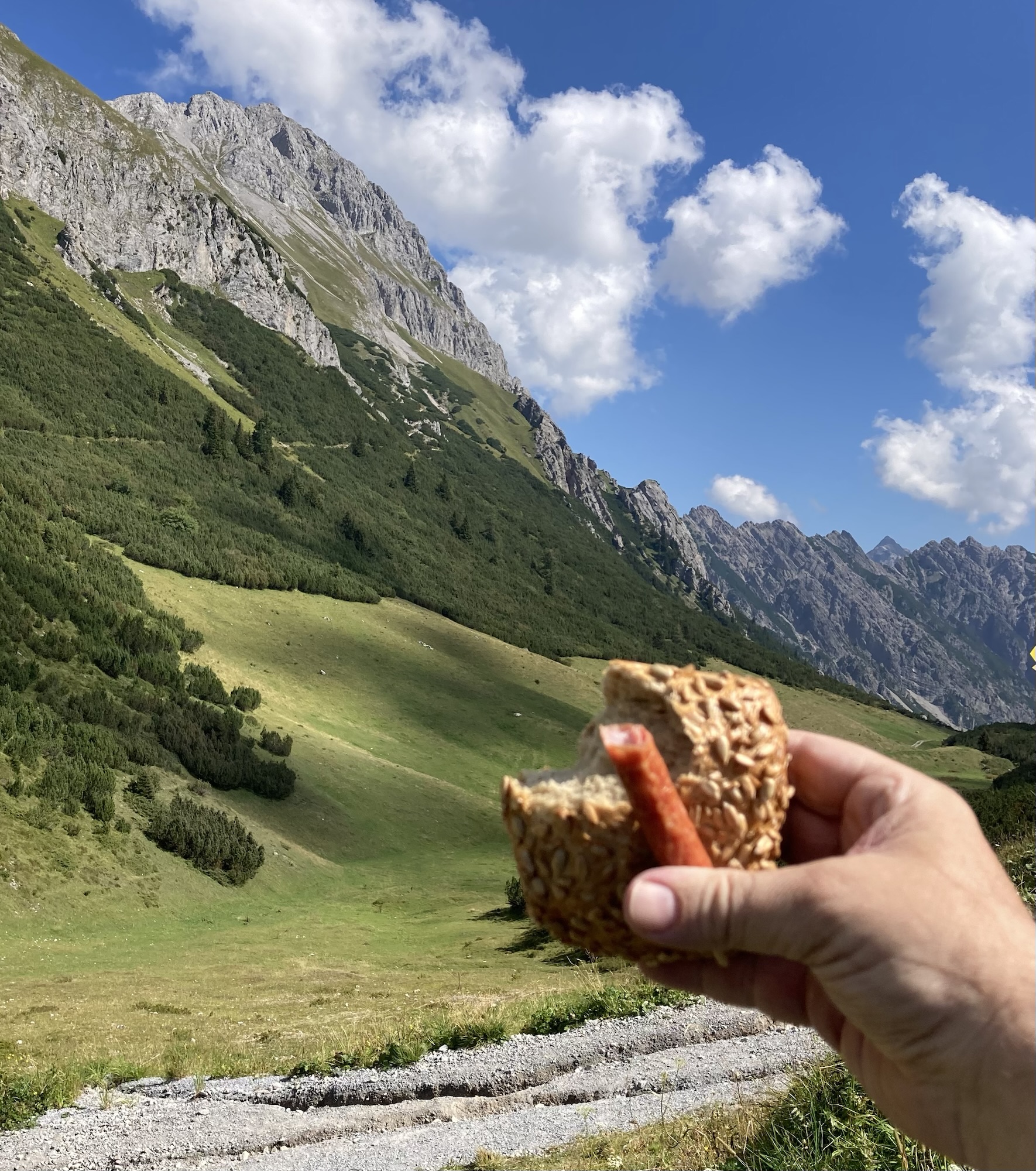 Kaffeegestärkt also weitergefahren und den St. Luzisteig hinauf in Richtung Liechtenstein 🇱🇮, wo wir doch prompt in den Nationalfeiertag hineinplatzten. Also nicht, dass das jetzt den Fürsten oder seine Gäste beeinträchtigt hätte – wir mussten halt über alle möglichen Schleichwege fahren😉