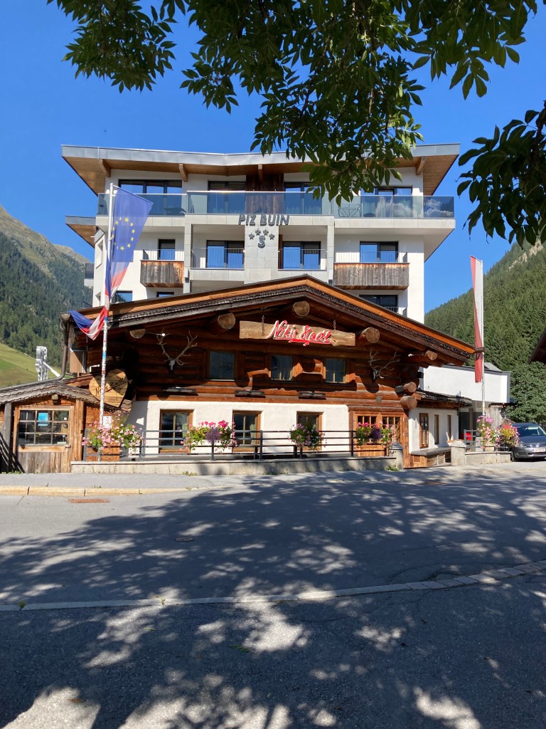 Unser Hotel in Ischgl empfing uns dann am späten Nachmittag mit einem schönen Zimmer, sehr netten Hotelbetreibern und ein wenig Trubel in der Zwischensaison – im Winter steppt hier der Bär!