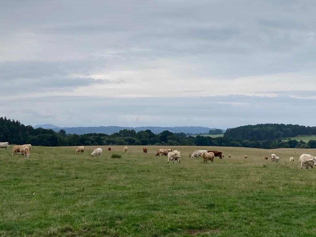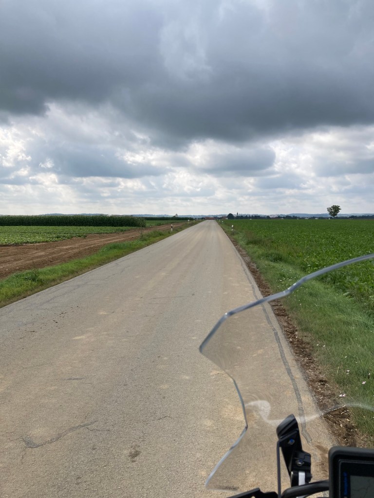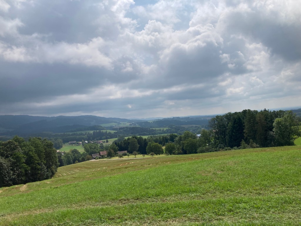 Der Weg führte mich dann weiter durch die niederbayerische Gurkenregion 🥒 (wusste ich bis dato auch nix davon) zur Fähre von Mariaposching. Die setzte mich dann für 2.- € über die Donau ans andere Ufer über. Von dort aus sah ich dann auch schon die Höhenzüge des Bayerischen Waldes, die ich dann in schönen Kurven auf allerlei kleinsten Sträßchen erkundete.