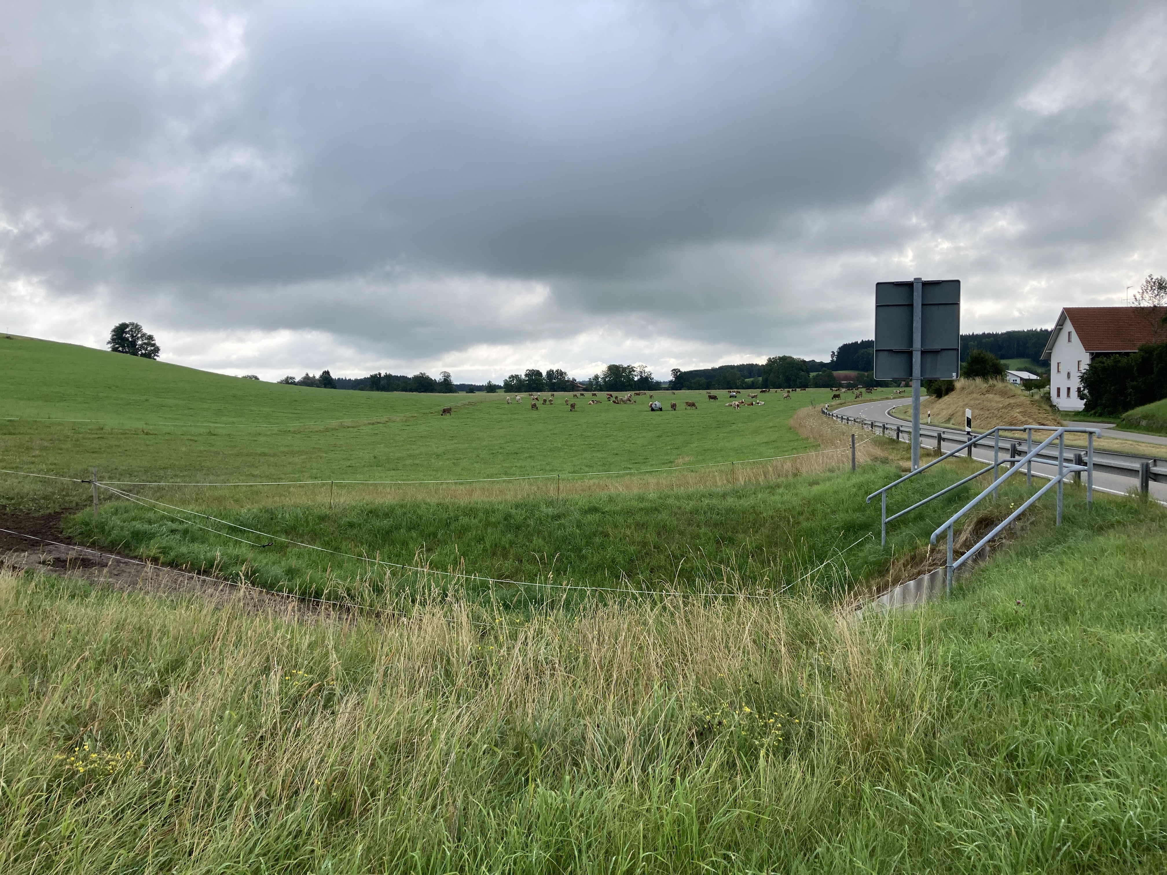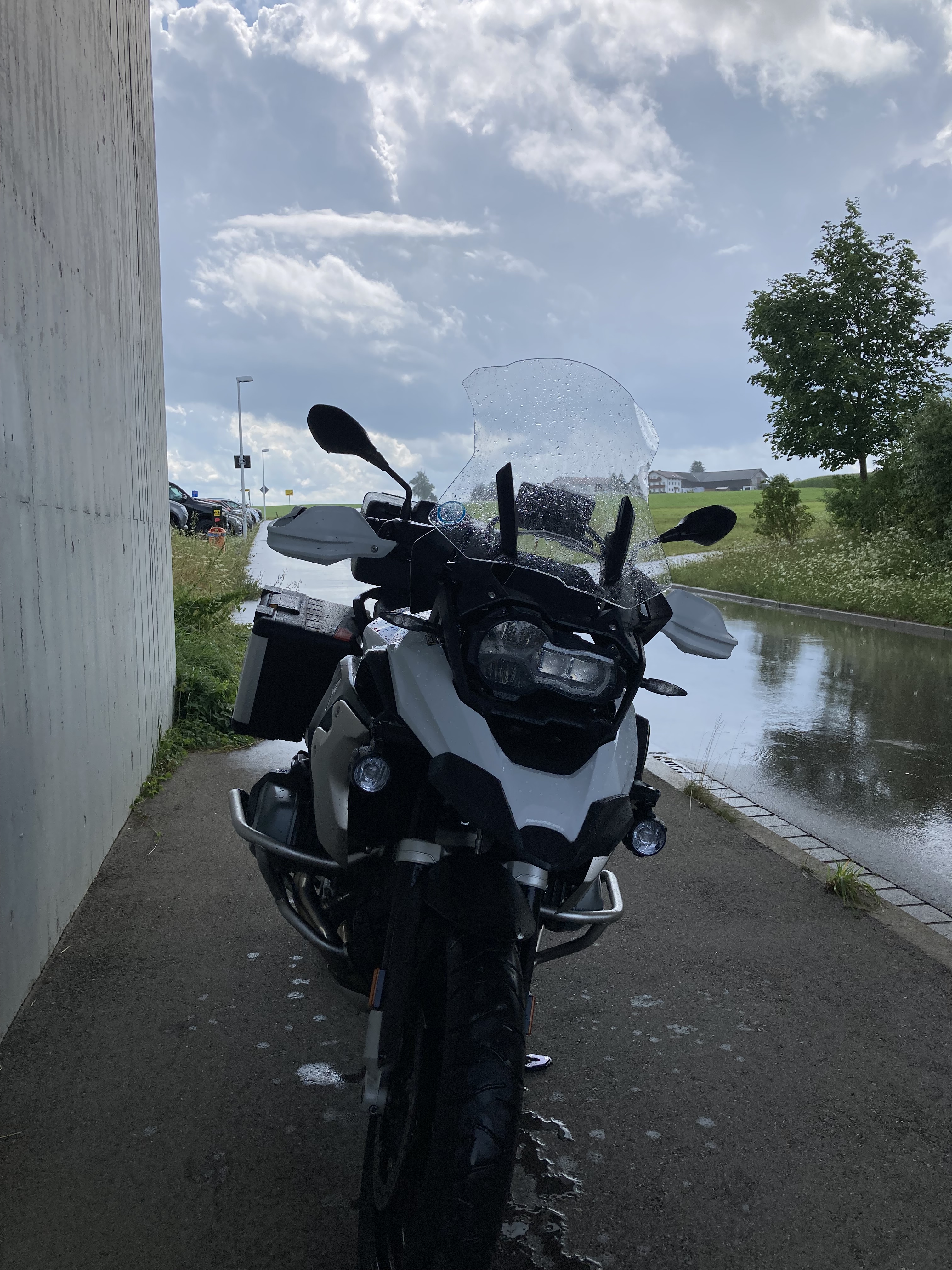 Über die ersten kleinen Straßen aus Oberschwaben hinaus führte mich der Weg ins württembergische und bayerische Allgäu. So richtig hatte das Wetter noch nicht mitgemacht und nach dem Starnberger See fing es dann auch an zu tröpfeln – erst nur wenig… dann ließ es aber kräftig fallen. Gerade noch so konnte ich mich unter eine Unterführung retten.