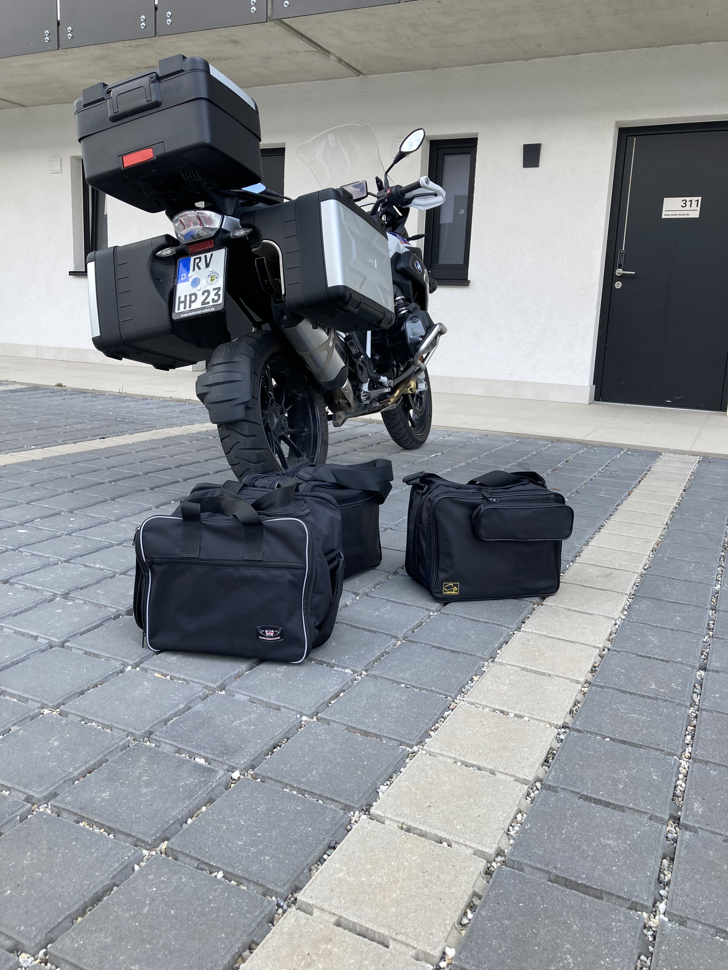 Das Fahrwerk kommt mit dem Gepäck bestens zurecht, wobei ich hier noch Optimierungsbedarf beim Platzangebot der Koffer sehe. Wenn ich denn die Innentaschen rausrechne, die einigen Platz verschenken, sollte das Volumen auch für zwei Personen ausreichend sein. Schließlich sind die Koffer ja abnehmbar.