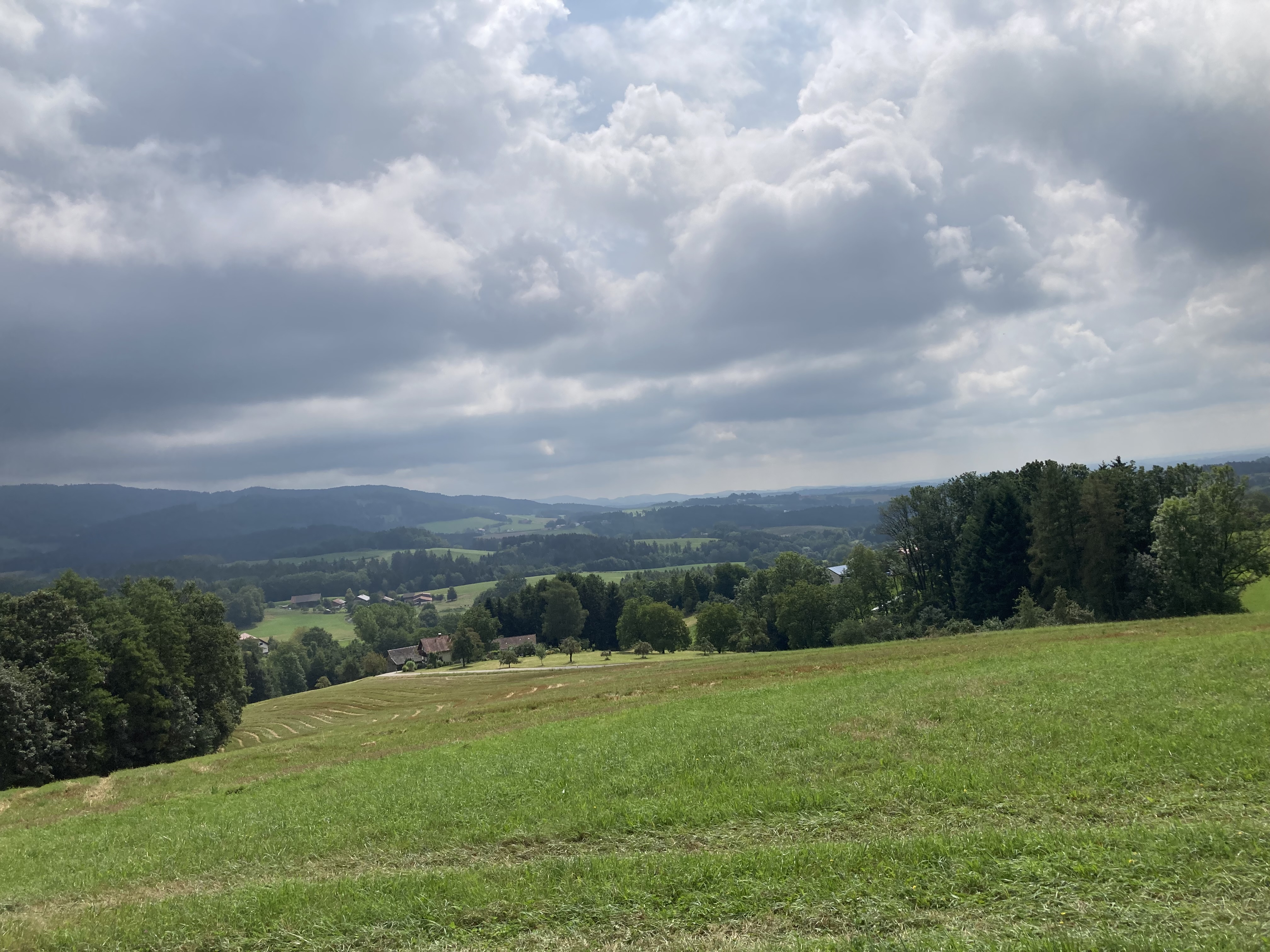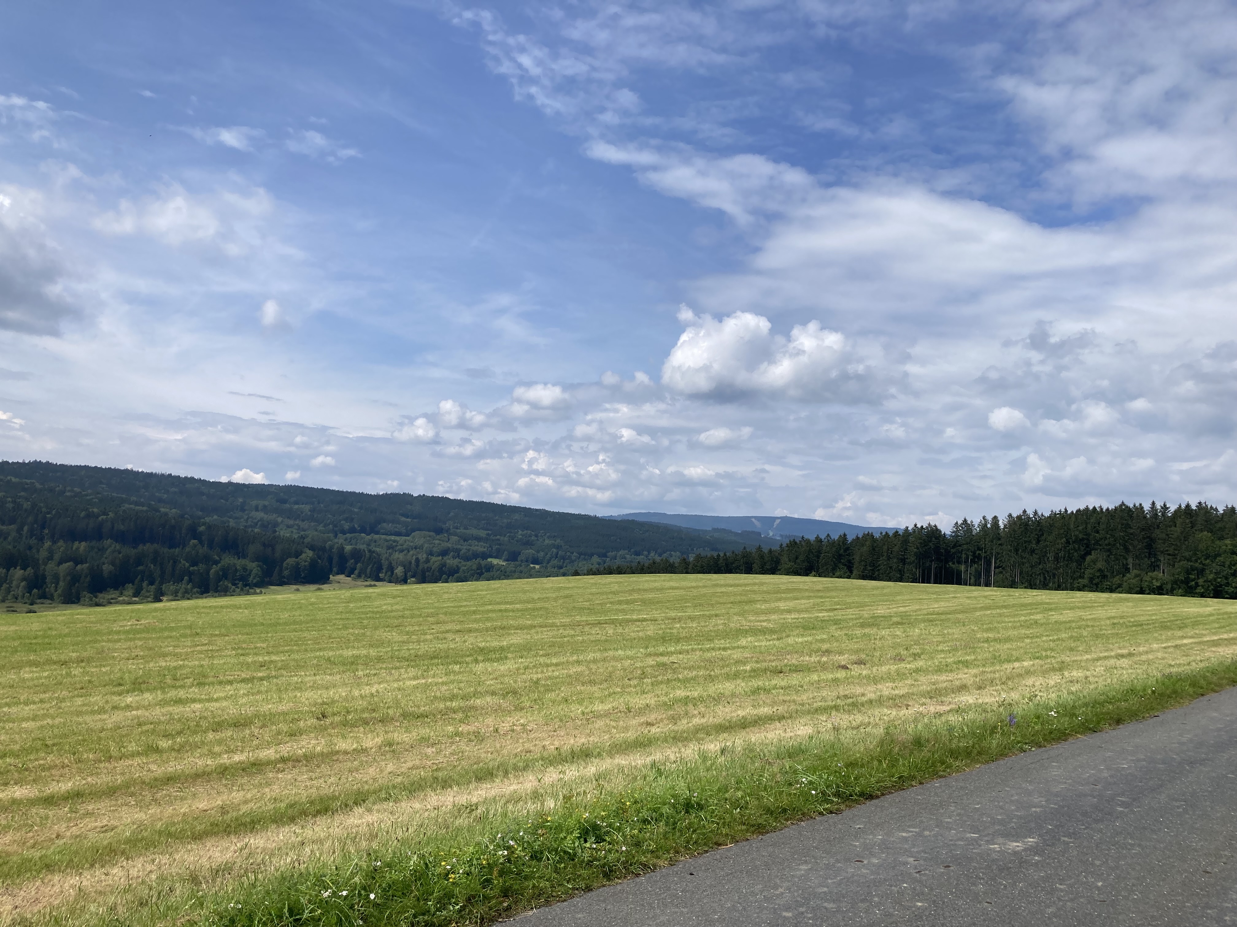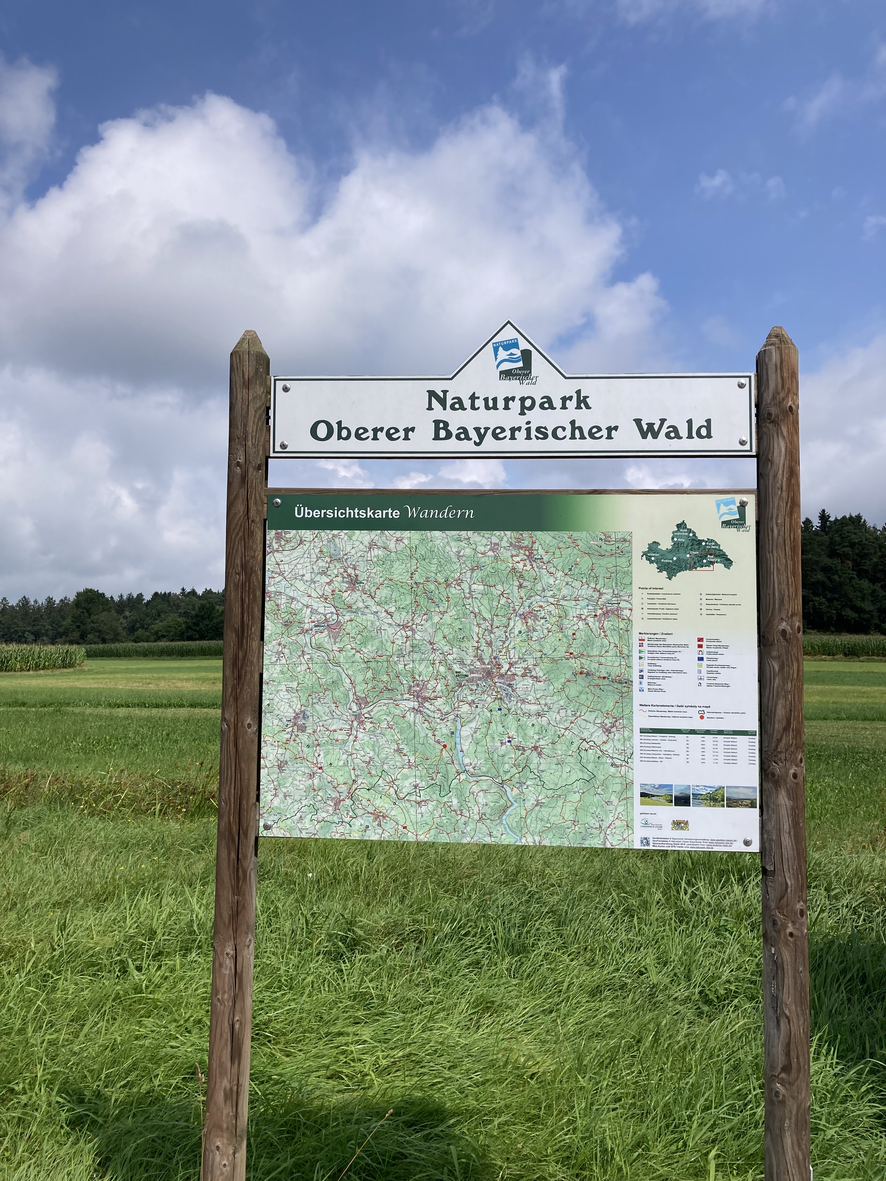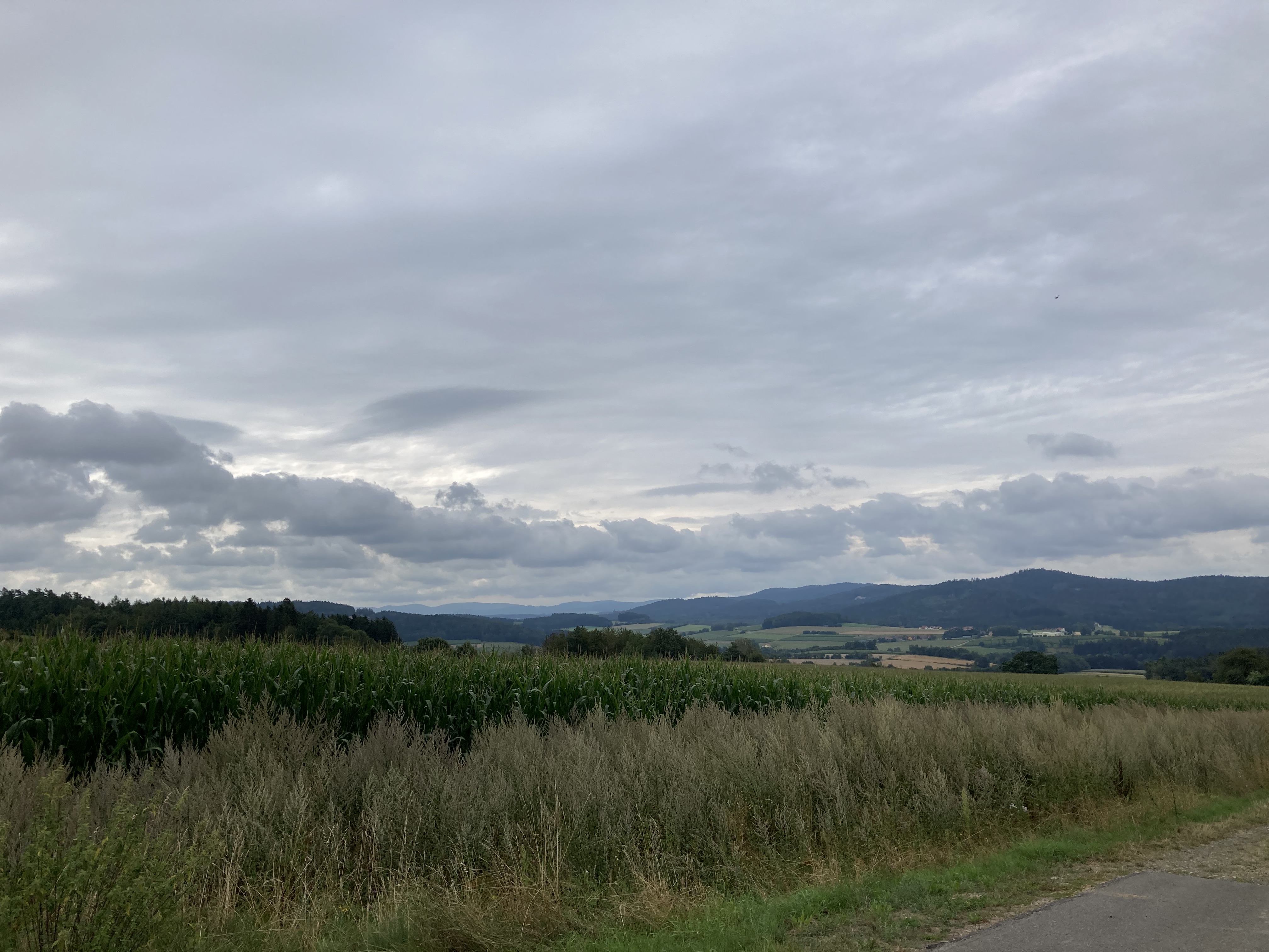 Der Weg führte mich dann weiter durch die niederbayerische Gurkenregion 🥒 (wusste ich bis dato auch nix davon) zur Fähre von Mariaposching. Die setzte mich dann für 2.- € über die Donau ans andere Ufer über. Von dort aus sah ich dann auch schon die Höhenzüge des Bayerischen Waldes, die ich dann in schönen Kurven auf allerlei kleinsten Sträßchen erkundete.