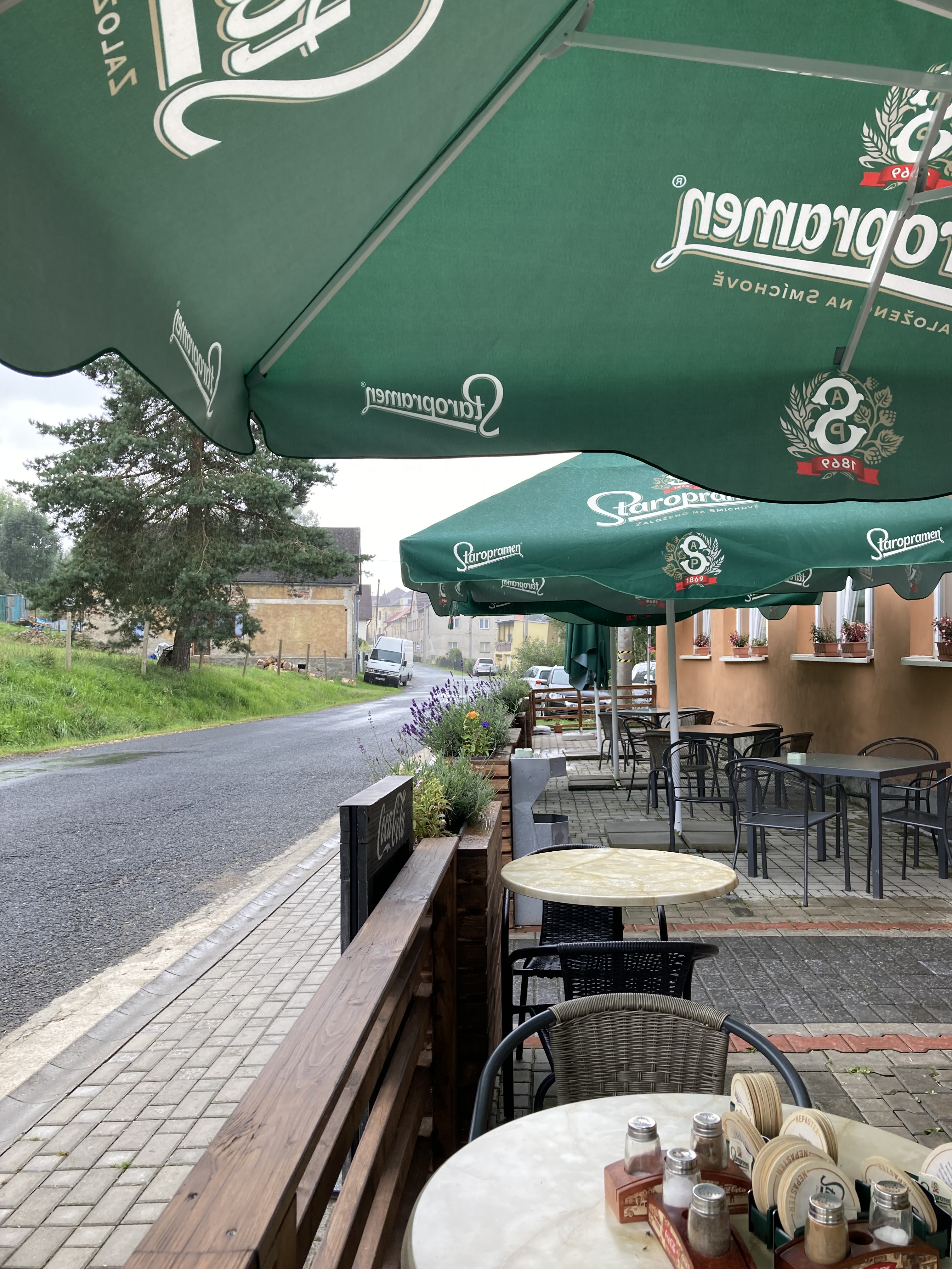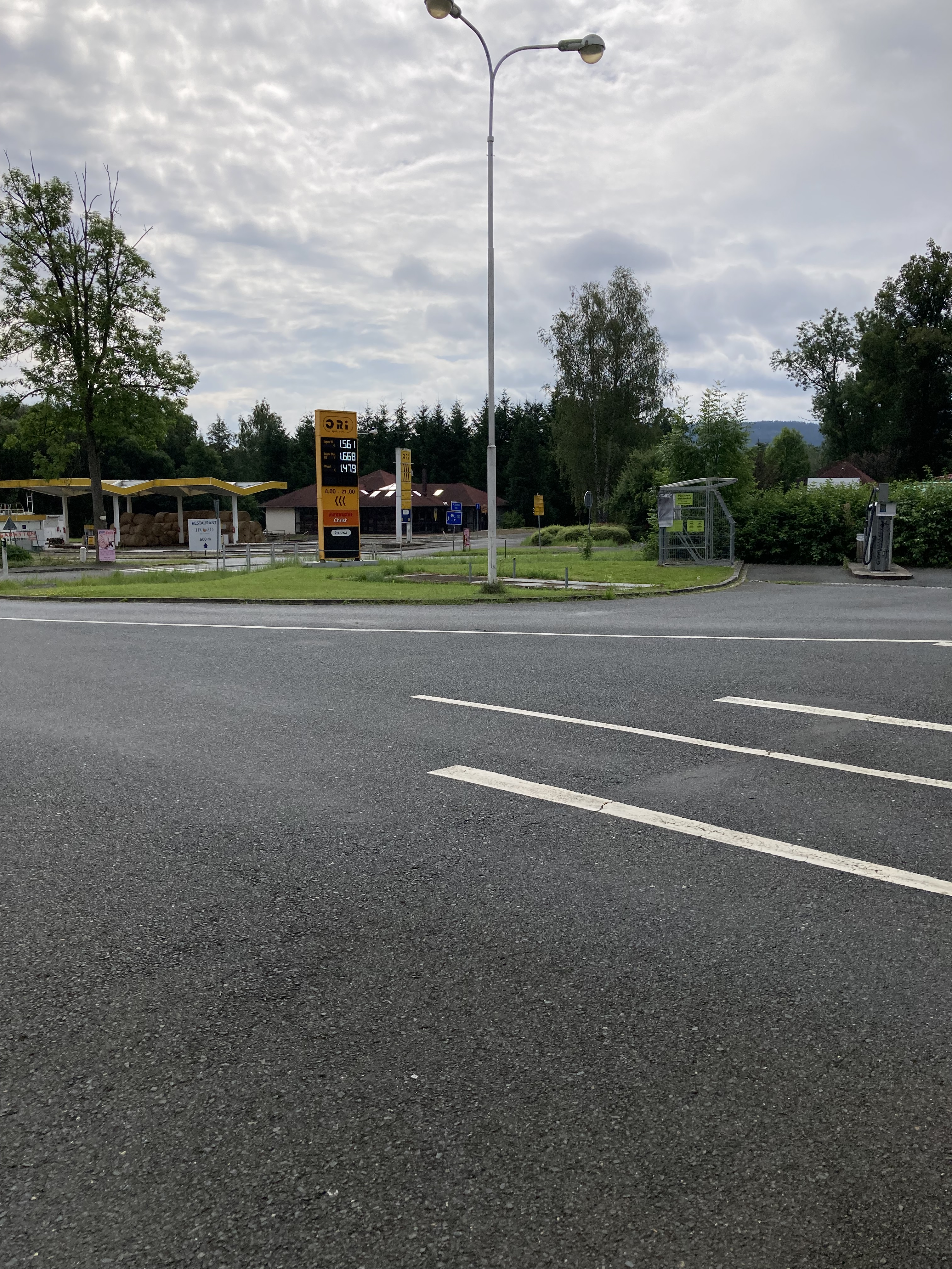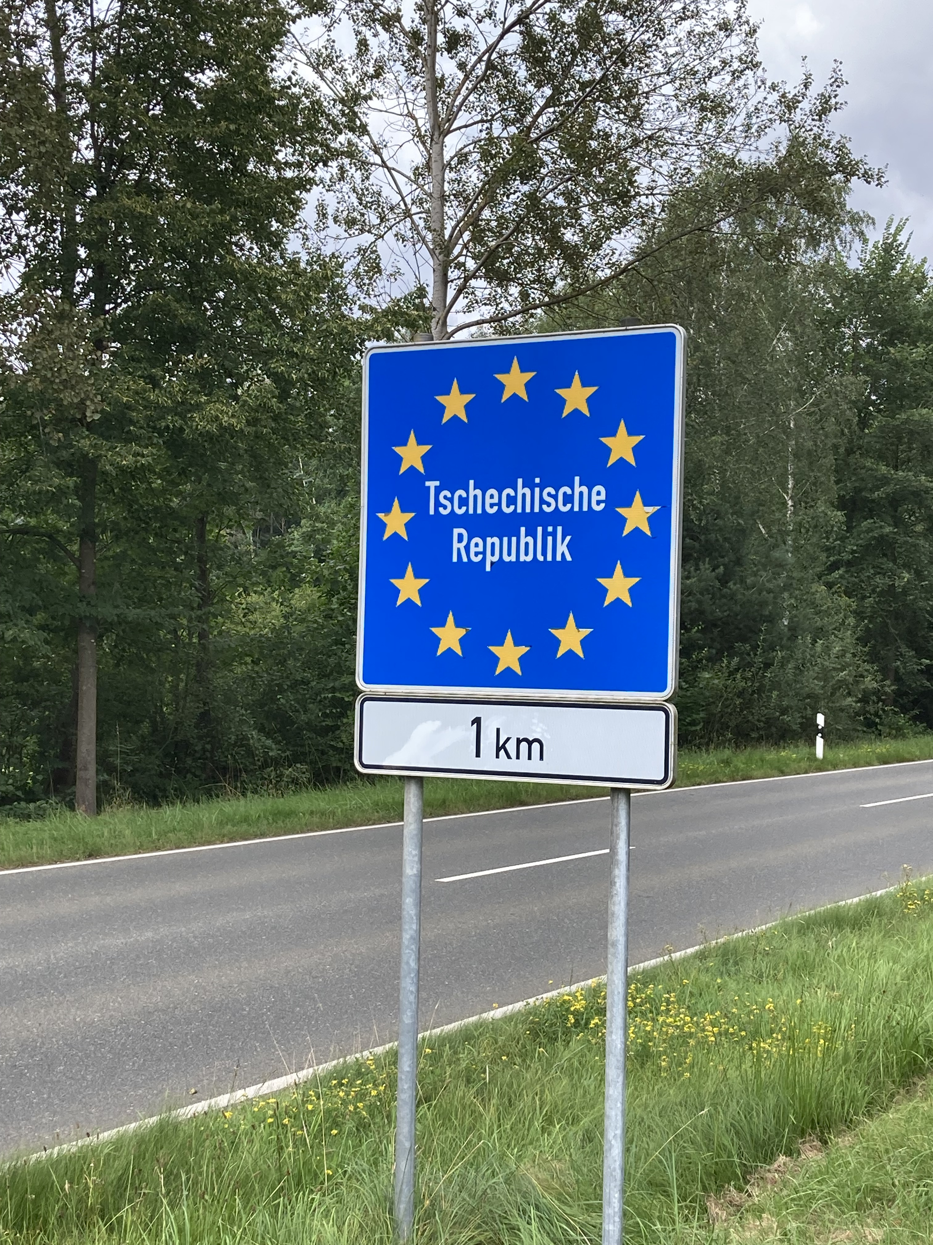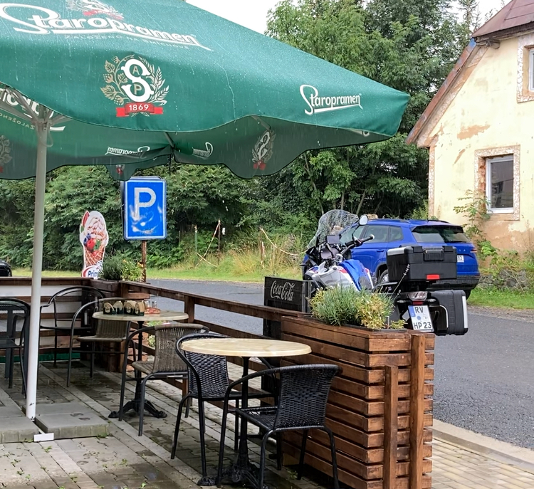 Und so erreichte ich nun am frühen Nachmittag die tschechische Grenze, die mich dann auch gleich mit einer Regendusche empfing. Kein Problem, rechtzeitig noch ne Unterstellmöglichkeit mit einem kurzen Mittagessen verbunden. Dabei habe ich doch tatsächlich einen Regensburger getroffen, der am Bodensee aufgewachsen nun schon seit 40 Jahren in Bayern lebt. Nach einem wirklich angenehmen Plausch verabschiedeten wir uns in verschiedene Richtungen und wünschten uns noch eine gute Reise.