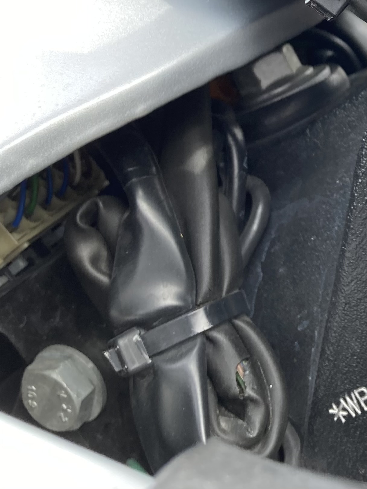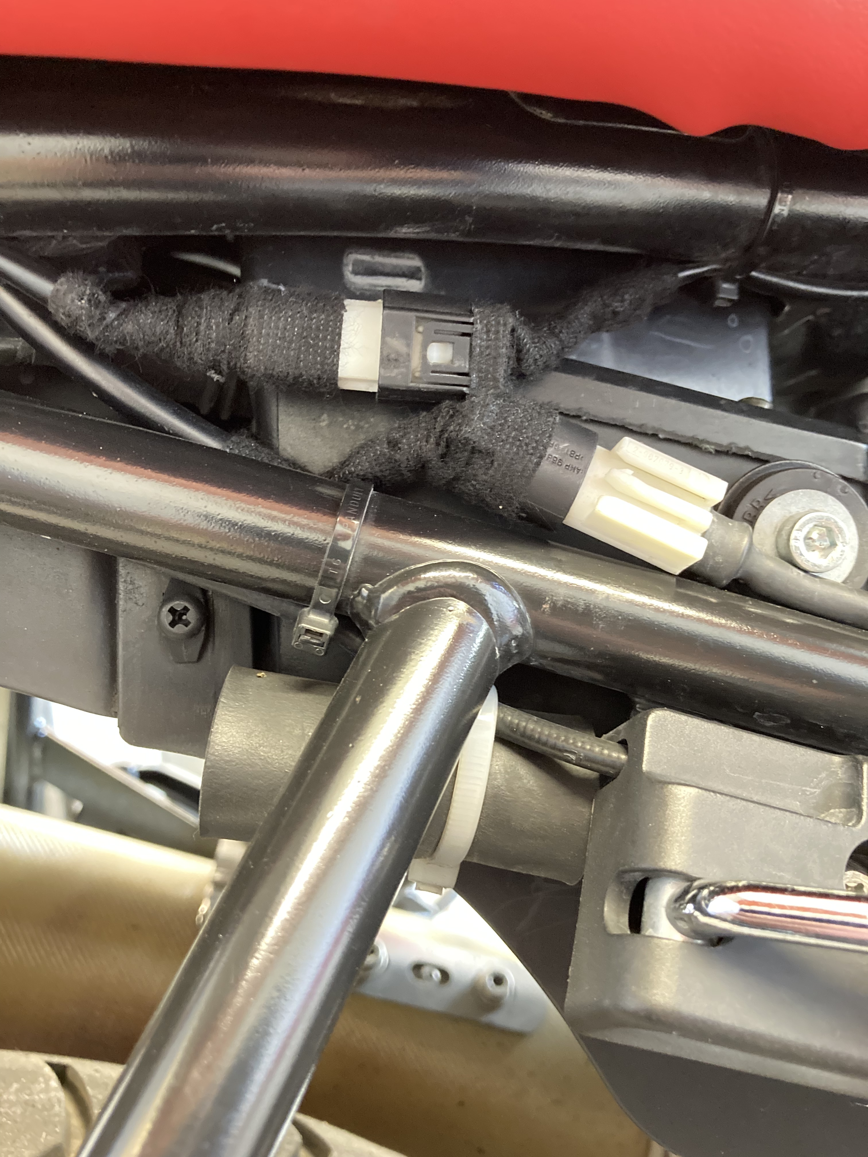 Der Zahn der Zeit nagt mittlerweile auch an den Ummantelungen des Kabelbaums. Also runter mit dem Tank, die Verkleidung abgebaut, die Kabelbinder gelöst und los ging´s mit der neuen Hülle…