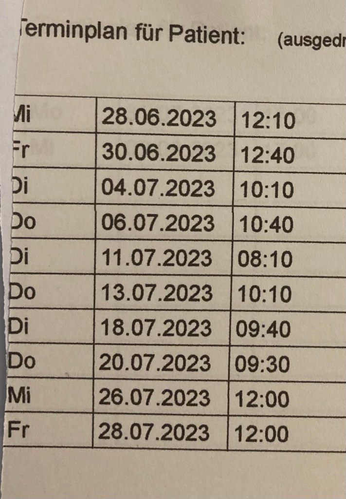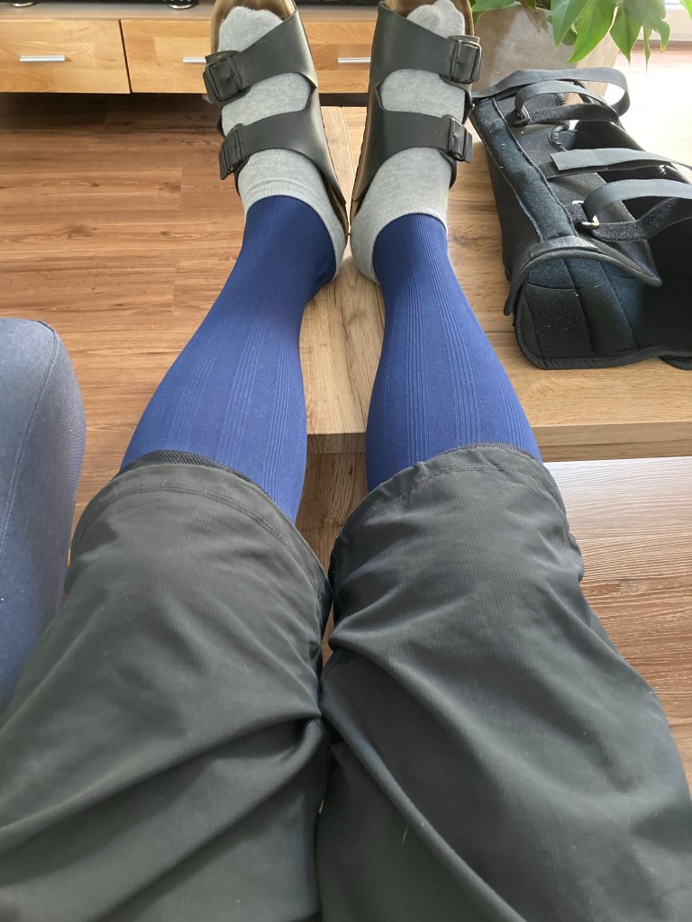 Fühlt sich momentan noch nicht so richtig reisetauglich an – wenigstens sind nun schon mal die Fäden gezogen worden 🪡🧵und die Reha läuft… Zumindest kann ich mittlerweile schon mal wieder für 5s auf einem Bein stehen👍.