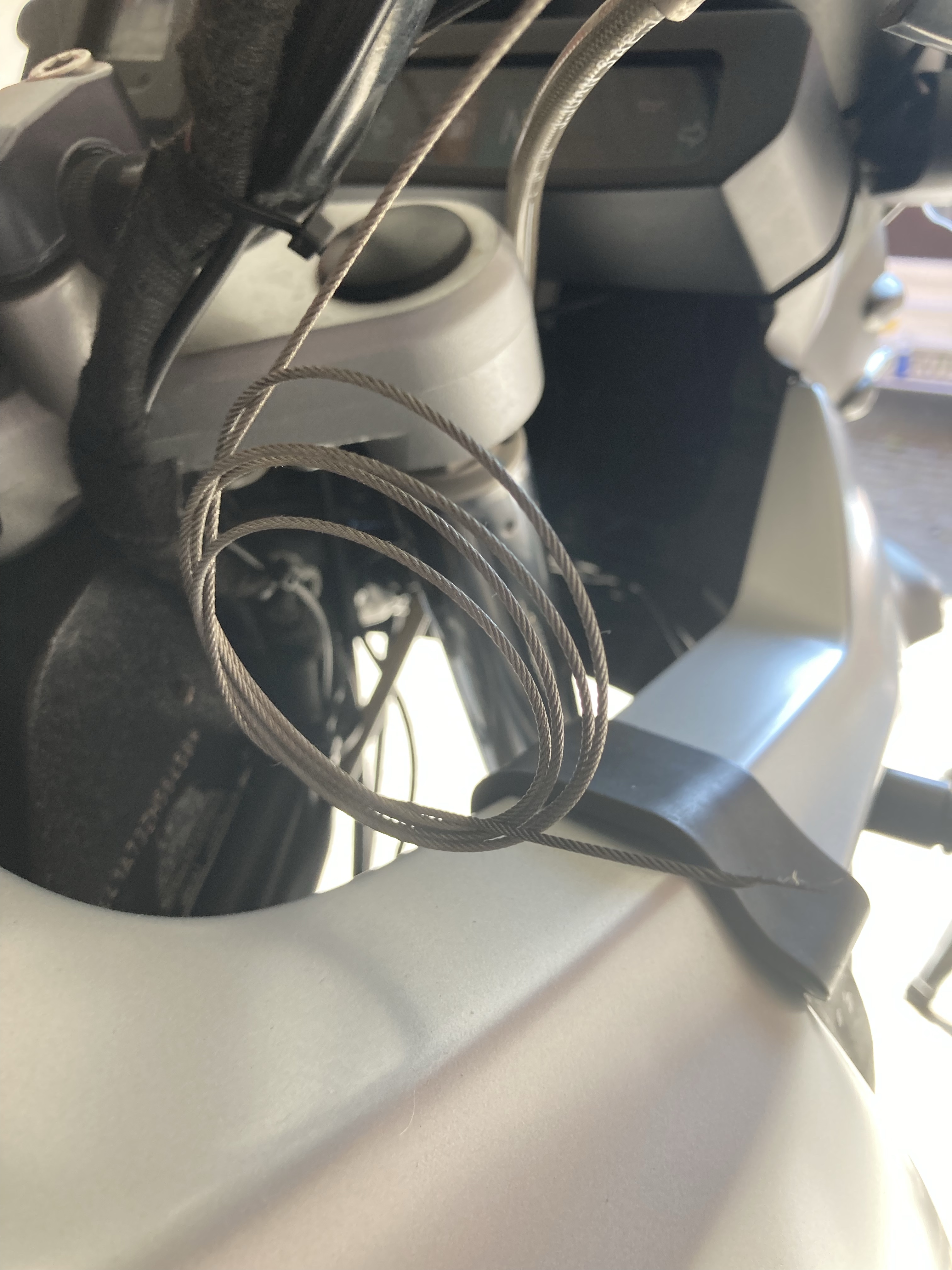 Tja, was soll man dazu sagen?! Eigentlich wollte ich an der Maschine nur den Gaszug überprüfen und abschmieren… quasi im Vorbeigehen. 2 x dran gedreht und ab war das Kabel😱 Aber, besser jetzt bei der Überprüfung als auf dem ersten Kilometer – mehr hätte der nämlich nicht mehr gehalten! Ziemlich aufwändig zu tauschen, aber die Zeit haben wir ja noch…