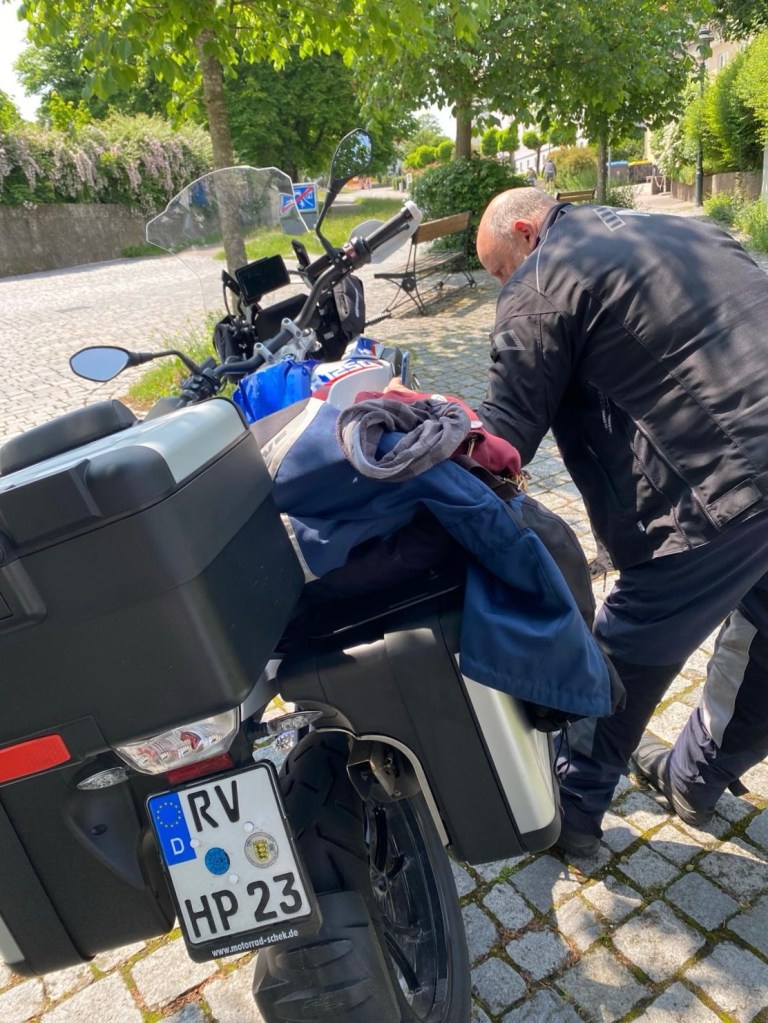 Wir sind viel in der näheren Umgebung gefahren. Um unsere Ausstattung auch klamottentechnisch für unsere 3-wöchige Reise durch Deutschland zu optimieren waren noch ein paar Zukäufe notwendig. Der Jethelm kam schon in die Jahre und 3 Wochen durch Deutschland kann auch mal witterungstechnisch in die Hose gehen.